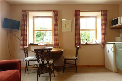 Barn self catering cottage comprises a double bedroom, shower / toilet, and combined living/ dining room with kitchen area. A small single futon bed is available to place in the living room. The kitchen contains a gas cooker, microwave, fridge, and cooking equipment. There is a wall-mounted TV/ DVD, hi-fi and wi-fi, also a settee and armchair. All rooms are on the ground floor. Prices include 4 towels, bedlinen, and electricity.