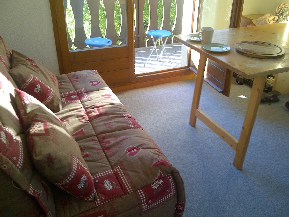 Our Les Houches studio apartment sleeps up to 3 in a double bed settee in the living room and 2 bunk beds in a bed alcove. So there is a reasonable amount of privacy between the two sleeping areas. But it is only a studio so is more comfortable for 2! There is a bathroom with bath, shower, WC and washing machine. The multi functional living room has a bedsettee, kitchen and dining areas. The kitchen has a fridge, ceramic hob, kettle, toaster and all cooking equipment. Also raclette set and slow cooker. There is a fold down dining table and 4 chairs. There is also ski storage downstairs.
