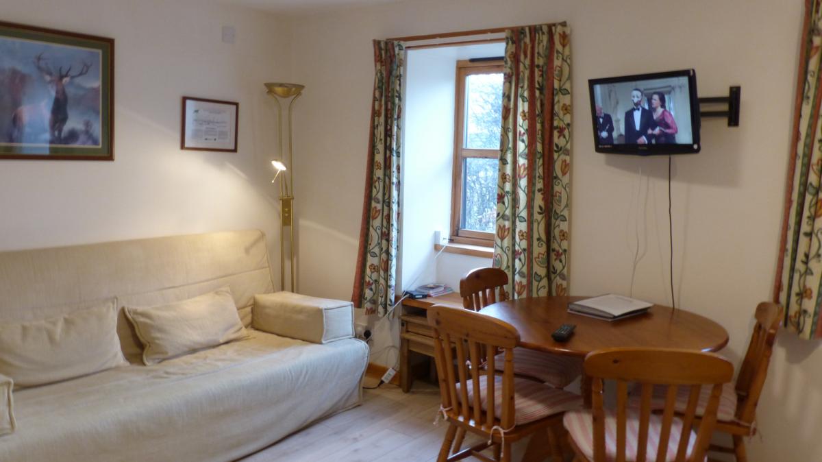 Loft cottage comprises a large upstairs family bedroom with one king size and two single beds, shower room and combined living/ dining room with kitchen area. There is a double bedsettee in the living room. The kitchen comes equipped with cooker, microwave, fridge, and all cooking equipment. There is a TV/DVD, and high speed wifi (25 Mbs), also a comfortable settee and armchair. Prices include 4 towels, bedlinen, and electricity.